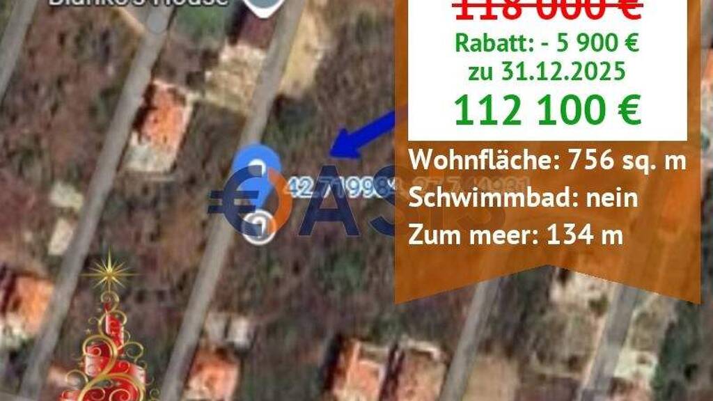 Grundstück in Regulation, Bulgarien, St. Vlas, Inzaraki-Gebiet, 756 qm, 118000 Euro, #33836026