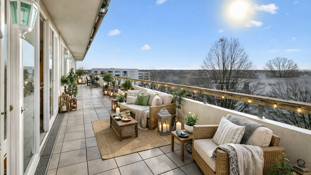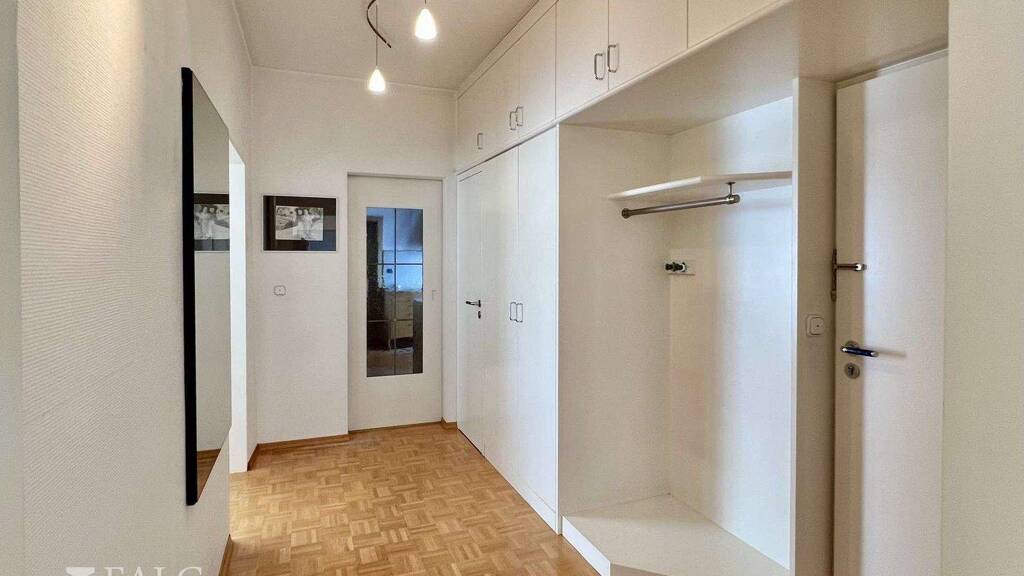 Die Küche liegt unmittelbar am Essbereich und kann über eine Schiebetür separat abgetrennt werden. Sie verfügt über eine praktische Vorratskammer und bietet Zugang zu einem eigenen, nach Norden ausgerichteten Balkon, der sich ideal für entspannte Morgenstunden oder als angenehmer Rückzugsort an warmen Tagen eignet.