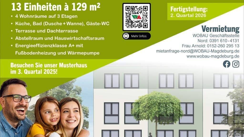 Wir bauen 13 Reihenhäuser für Sie. Mietverträge können frühestmöglich ab dem 01.06.2026 beginnen. Interessierte können sich gern bei uns bewerben. Wir freuen uns auf Sie.