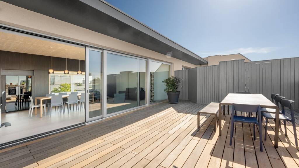 Diese einzigartige Wohnung befindet sich im Dachgeschoss eines im Jahre 2022 erbauten Wohnhauses. Die Wohnung verfügt über ca. 51 m² Wohnfläche und kann bequem mittels Aufzug erreicht werden. Die Wohnfläche teilt sich auf in eine Wohnküche, ein Schlafzimmer, ein Badezimmer und einen Abstellraum. Zusätzlich dazu verfügt die Wohnung über eine traumhafte Dachterrasse. Alle Zimmer der Wohnung sind mit Fischgrätparkett ausgelegt und die Nassräume mit Fliesen. Beheizt wird die Wohnung mittels Luftwärmepumpe. Die Wohnung verfügt über Fußbodenheizung sowie 3-fach verglaste Kunststofffenster und -terrassentüren mit aussenliegendem Sonnenschutz.Bei dem beigefügten Bild handelt es sich um ein Beispielbild.