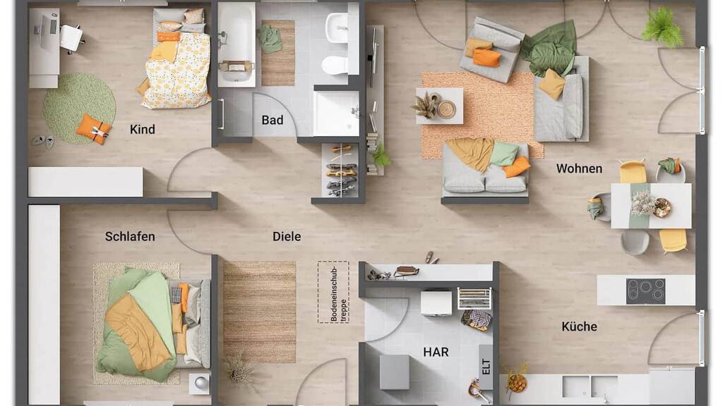 . Schlüsselfertig: Ihr Haus wird Ihnen, am Ende der Bauzeit, schlüsselfertig übergeben. Sie richten sich ganz nach Ihrem Geschmack ein.