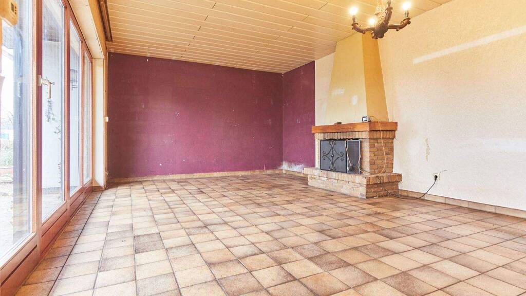 Dieser freistehende Bungalow bietet großzügiges Wohnen auf einer Ebene und eignet sich ideal für Familien oder Paare mit Platzbedarf. Das Haus verfügt über drei große Schlafzimmer, ein geräumiges Wohn- und Esszimmer sowie eine große Küche mit älterer Einbauküche (aus dem Baujahr). Das moderne Bad (Baujahr 2008) ist mit einer Whirlpoolwanne und separater Dusche ausgestattet, zusätzlich steht ein Gäste-WC mit Fenster zur Verfügung. Beheizt wird das gesamte Erdgeschoss über eine Fußbodenheizung, gespeist durch eine Gasbrennwerttherme aus dem Jahr 2002. Ein gemauerter, integrierter Kamin ist ebenfalls vorhanden.