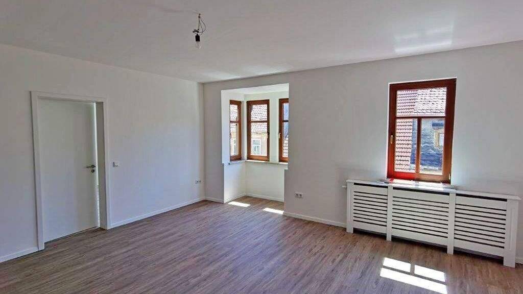 Angeboten wird hier eine geräumige Vierzimmerwohnung im Zentrum von Hildburghausen. Im Jahr 2022 wurde die Wohnung umfassend renoviert und bietet alles für eine große Familie. Neben dem hellen Wohnzimmer haben Sie 3 weitere Schlafzimmer, ein Badezimmer mit Dusche und Wanne. Von der Küche aus gelangen Sie auf den ca. 9 m² großen Balkon, der auch an heißen Sommertagen zum Entspannen einlädt. Eine Räume weiße leicht fallende Böden auf.