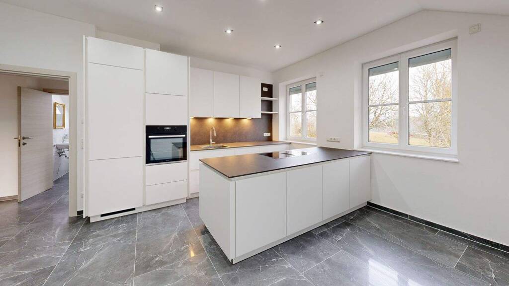Die im Kaufpreis enthaltene, maßgefertigte Einbauküche im Wert von ca. € 18.000,- vereint zeitlose Eleganz mit moderner Technik und macht das Kochen zu einem echten Erlebnis.