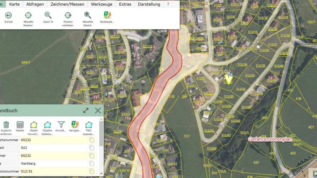 Gefahrenzonenplan: Die Liegenschaft befindet sich auĂźerhalb der roten oder gelben Gefahrenzone.