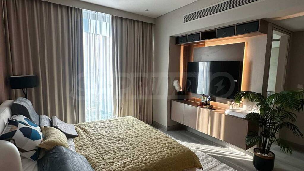 Das Studio ist hochwertig ausgestattet ? moderne Küche mit eingebauten europäischen Geräten, stilvolle Beleuchtung und elegantes Bad mit edlen Materialien. Dank durchdachter Stauraumlösungen und Smart-Home-System ist das Wohnen hier besonders bequem.