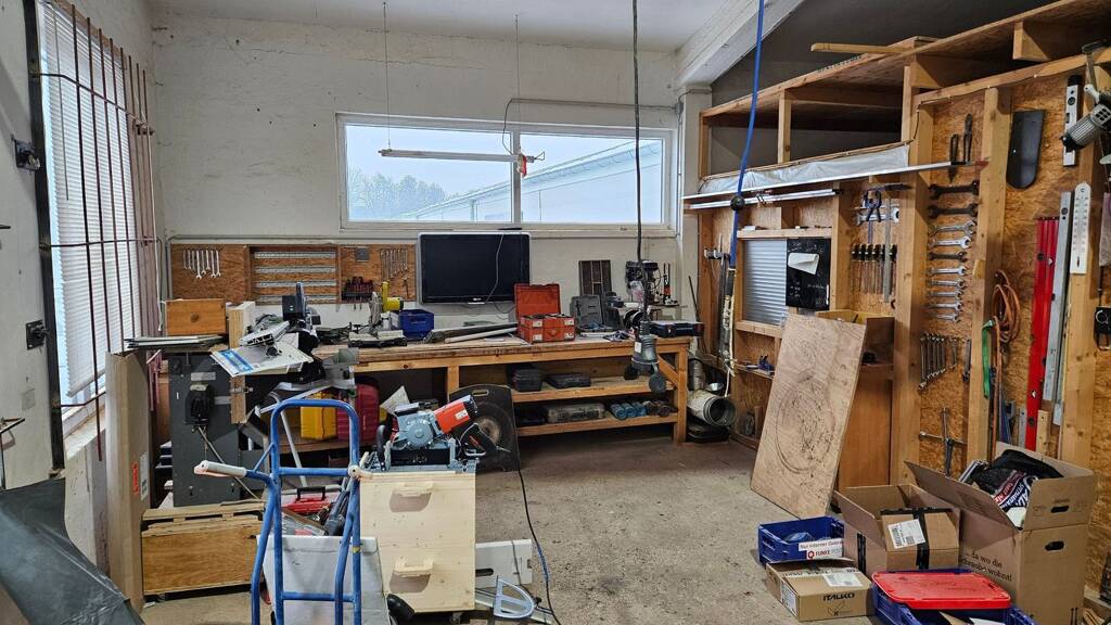 Die Beheizung erfolgt über ein Aggregat. Die Werkstatt ist mit umfangreichen Einrichtungen ausgestattet, die übernommen werden können. Der Zugang über eine Rampe und eine danebenliegende Treppe ermöglicht einen einfachen Ein- und Ausstieg. Die vorhandenen Fenster sorgen für eine helle und angenehme Arbeitsatmosphäre.