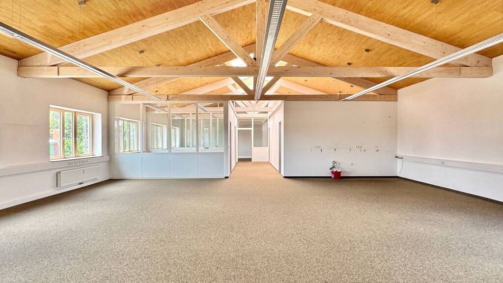 Besondere Merkmale: . ?? Großzügige Glasflächen für maximalen Tageslichteinfall . ?? Offene Holzdecken mit modernem, natürlichem Design (im Büro) . ??? Serverraum für Ihre IT-Infrastruktur . ?? Separate WCs für Damen und Herren . ?? Archiv-/Abstellfläche . ?? Flexibel nutzbare Einzel- und Gruppenbüros . ??? Parkmöglichkeiten auf dem Gelände vorhanden