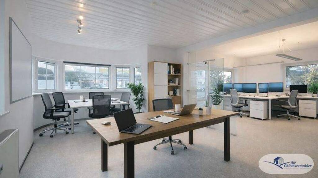 Die angebotene Gewerbefläche befindet sich in zentrumsnaher Lage von Bernau am Chiemsee und eignet sich ideal für Büro-, Praxis-, Dienstleistungs- oder Einzelhandelsnutzung. Mit einer Gesamtfläche von ca. 58 m² bietet sie eine durchdachte und funktionale Raumaufteilung. Der Großteil der Fläche entfällt auf einen großen, hellen Hauptraum, der vielseitig genutzt werden kann und ausreichend Platz für Kundenempfang oder Arbeitsplätze bietet. Ergänzt wird die Einheit durch einen separaten Abstellraum, der sich hervorragend als Lager oder Stauraum eignet, sowie durch eine eigene Toilette, die direkt in der Gewerbefläche integriert ist.