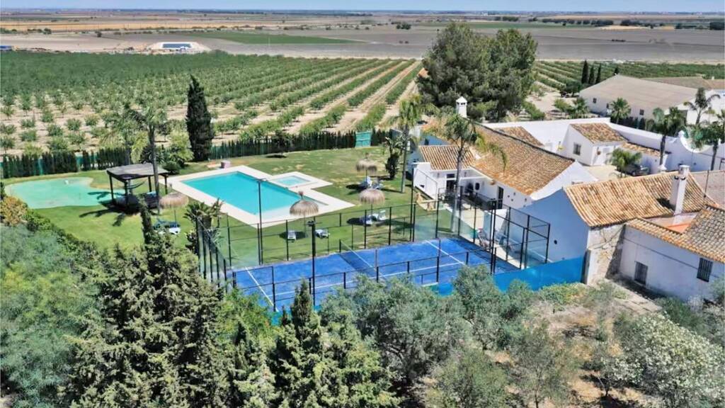 Andalusien, Provinz Sevilla, Las Cabezas de San Juan eine tolle Finca, entweder privat zu nutzen oder als Gästehaus für Urlauber oder Events - ~ 10.000 m² Grundstück, gut zugänglich - ~ 2.100 m² gebaute Fläche: 5 Apartments, 1 Apartment mit 2 Räumen, elegant eingerichtet, alle mit AirCondition, TV und Wifi - verschiedene Lounges, Gemeinschaftsbereiche, Swimmingpool mit Jacuzzibereich, Tennisplatz - hervorragende Lage zwischen Cadiz und Sevilla, ideal für Ausflüge ans Meer oder zu den "weissen Dörfern" Andalusiens. - Und für die Pferdefreunde: die Erstellung von Pferdeboxen bzw einem Reitplatz sollte kein Problem sein.
