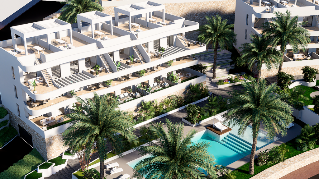 Das Resort liegt in Finestrat, bestehend aus 78 Apartments, die sich auf 5 Blöcke mit jeweils 15 oder 18 Einheiten verteilen. Die Apartments bieten einen atemberaubenden Panoramablick auf die Skyline von Benidorm und das Mittelmeer.