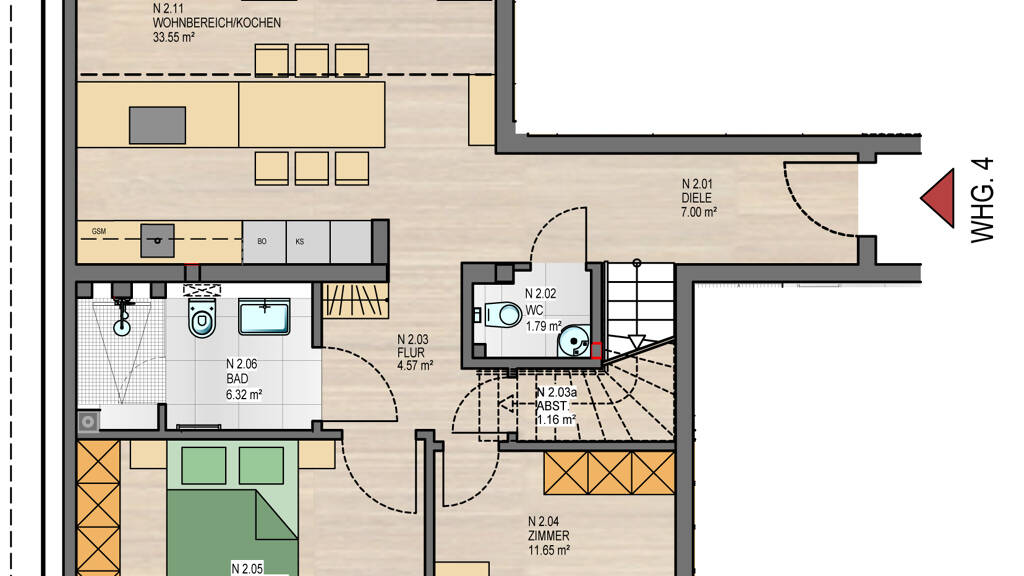 Wenige Meter vom Marktplatz im Zentrum von Erkelenz befindet sich die angebotene moderne Galeriewohnung. Das Gebäude besteht aus drei Geschossen. Die Wohnungsgrößen beträgt ca. 124 Quadratmetern. Die Wohnräume sind mit hochwertigem Vinylboden ausgestattet. Die Wände und Decken sind mit Malerflies tapeziert und weiß gestrichen. Die modernen Bäder verfügen über eine bodengleiche Dusche. Ein Schlafzimmer verfügt über ein direkt angrenzendes Badezimmer, gennant auch En-Suite-Bad. Die Wohnungen werden inklusive einer hochwertigen Einbauküche vermietet. Der Mietpreis der Küche ist bereits in den Mietpreisen der Wohnung enthalten. Der Aufzug ermöglicht einen stufenlosen Zugang zur Wohnung und Kellerraum. Die Beheizung der Wohnung erfolgt enrgieeffizent per Erdwärme. Das Gebäude erfüllt den KfW 40+ Standard. Ein überdachter PKW-Stellplatz kann ebenfalls angemietet werden. Die Stellplätze befindet sich auf dem Grundstück.