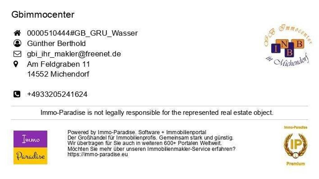Alle in dieser Veröffentlichung enthaltenen Angaben und Informationen beruhen auf zu- gänglichen Quellen, die das GBimmocenter für zuverlässig hält. Bei allen Texten, Daten, Diagrammen, Prognosen, Meinungen, Programmen oder sonstigen Informationen bleiben Irrtümer vorbehalten. Eine Garantie für die Richtigkeit oder Vollständigkeit der Angaben kann ich nicht übernehmen. Keine Information ist als eine Garantieaussage zu verstehen. Die Veröffentlichung stellt insbesondere keine Beratung dar.