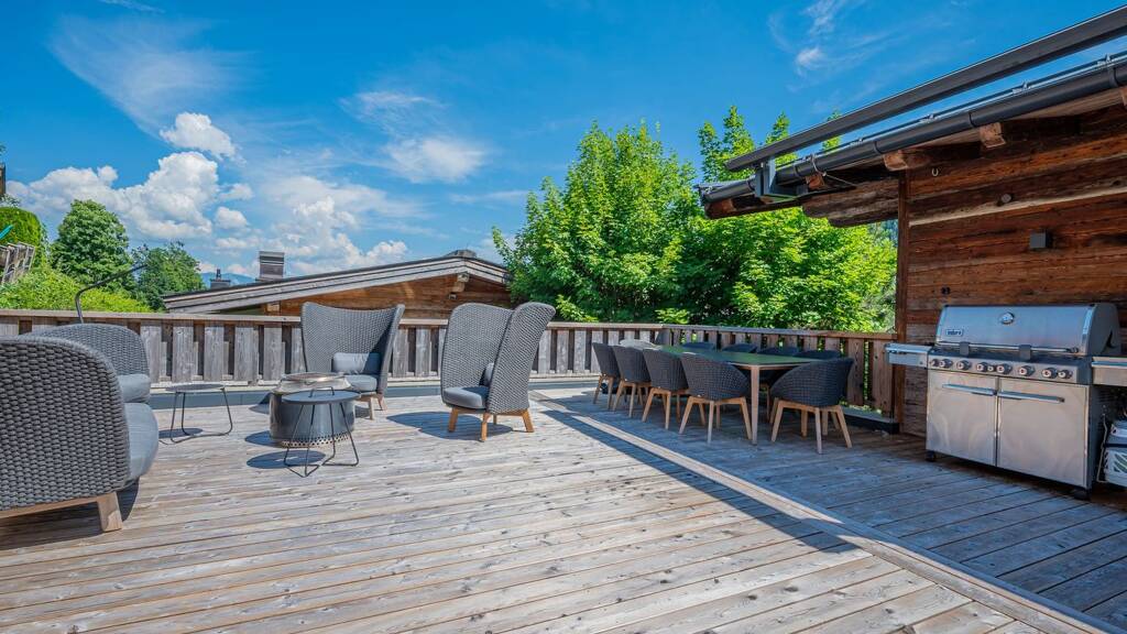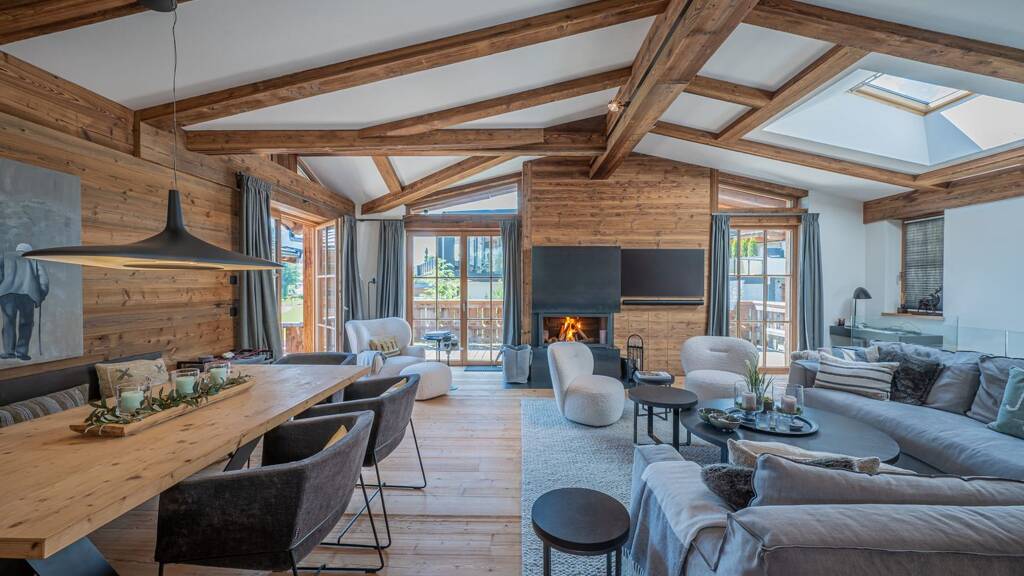 Baujahr: 2015; Die Flächenangaben beinhalten keine Garagen- und Terrassenflächen. Gas-Fußbodenheizung, voll möbliert, Sichtdachstuhl mit Altholzbalken, Alt (Antik) holz-Böden und Vollholztüren in Altholz, große Süd- und Nordterrasse, viel Sonne, Anschlüsse für Alarmanlage, Kies Dach, Doppelgarage ca. 65m2, Sauna vorhanden, Internet, Kabelfernsehen, offener Panoramakamin, Terrassen ca. 65m2, Ortskern von Going in 5 Minuten Gehzeit zu erreichen, viel Sonne und sehr schöner Ausblick in die Umgebung gegeben, HWB in Arbeit;