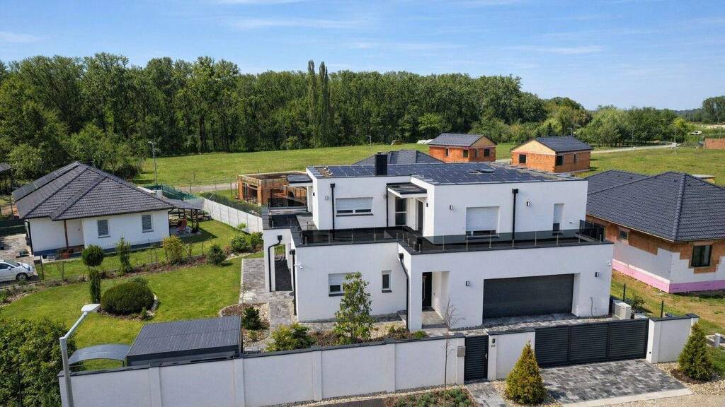 In Máriakálnok, nur 300 Meter von Mosonmagyaróvár entfernt, steht diese außergewöhnliche, neu gebaute Luxusvilla auf einem 827 m2 großen Grundstück zum Verkauf.