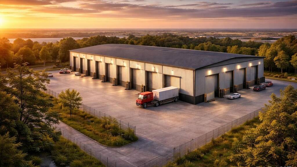 Diese moderne und vollständig geschlossene Lagerhalle bietet eine großzügige Gesamtfläche von ca. 1.050 qm, die bei Bedarf in zwei separate Einheiten à ca. 525 qm unterteilt werden kann. Mit sechs großflächigen Sektionaltoren auf einer Hallenseite ermöglicht die Halle eine optimale Erreichbarkeit für Warenumschlag, Lagerung und Logistikprozesse.