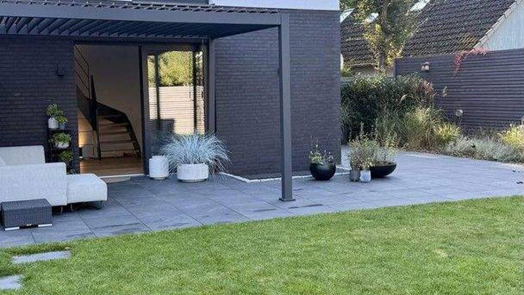 Der Garten ist großzügig, pflegeleicht angelegt und vollständig sichtgeschützt. Eine große Terrasse verbindet sich mit zwei überdachten Bereichen. Dazu gehören eine geschützte Sitzecke sowie ein separater Grillbereich. Ein geräumiges Gartenhaus mit weiterer überdachter Fläche ergänzt den Außenraum. In den warmen Monaten nutzen Sie den Garten wie eine natürliche Erweiterung des Wohnbereichs.