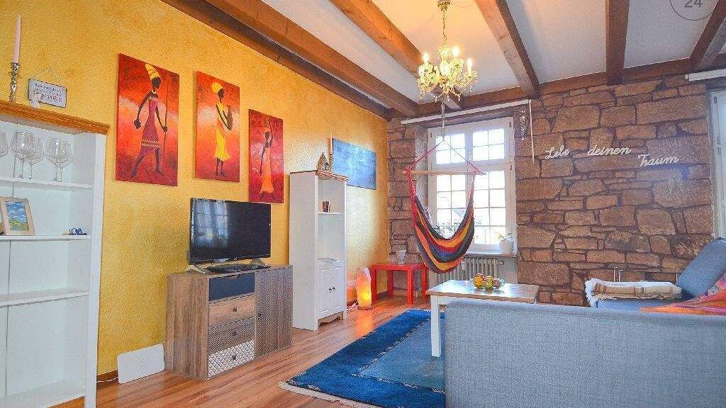 Diese schöne, lichtdurchflutete 2-Zimmer-Wohnung befindet sich im 1.OG eines Mehrfamilienhauses in der schönen Altstadt von Schopfheim. Die Wohnung verfügt über ein Wohn- und Essbereich, eine Küche, ein Schlafzimmer sowie ein Badezimmer mit separatem WC. Durch den langen Flur gelangt man in den hellen Wohn- und Essbereich, welcher mit einem Ecksofa, dasr ebenfalls als Schlafsofa umfunktioniert werden kann, einem Couchtisch sowie einem TV-Gerät ausgestattet ist. Im Essbereich befindet sich ein Esstisch, an dem bis zu vier Personen Platz nehmen können. Von hier aus gelangt man in die vollausgestattete Küche inkl. Geschirrspülmaschine. Eine Kühl-/ Gefrierkombination ist ebenfalls vorhanden. Im Schlafzimmer befindet sich ein Wasserbett (180/200), welches beheizt werden kann sowie ein geräumiger Kleiderschrank. Vom Schlafzimmer aus hat man Zugang in das Badezimmer, in welchem sich eine Dusche befindet. Das WC befindet sich in einem separaten Badezimmer, indem sich ebenfalls eine Waschmaschine sowie ein Trockner befindet. WLAN steht zur Verfügung. Ein PKW-Stellplatz ist vorhanden. Tierhaltung ist nach Absprache erlaubt. Die Wohnung kann von bis zu zwei Personen für 1445 Euro/ Monat inklusive Nebenkosten angemietet werden. In den Wintermonaten von Oktober bis einschließlich April fällt ein Heizkostenaufschlag in Höhe von 80 Euro/ Monat zusätzlich an. Eine Zwischenreinigung wird 1x im Monat nach Absprache durchgeführt und mit 25 Euro/ Stunde abgerechnet. Ebenso die Endreinigung nach Auszug.