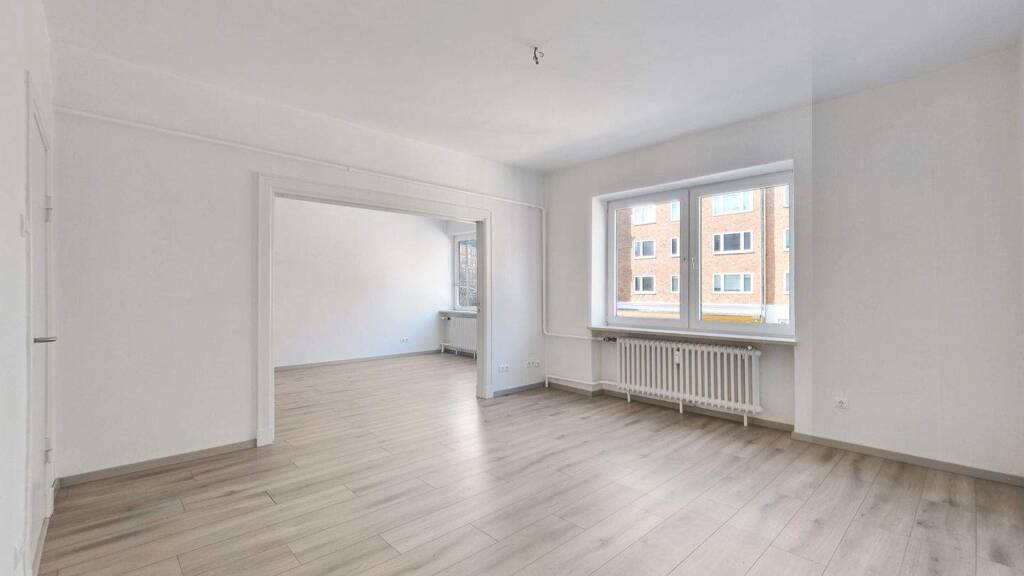 Das Herzstück der Wohnung bilden zwei großzügige, durch eine Schiebetüröffnung miteinander verbundene Zimmer. Diese können beispielsweise als Wohn- und Esszimmer genutzt werden. Durch Schließung der Schiebetüröffnung können hier mit geringem baulichen Aufwand zwei separate Räume entstehen.