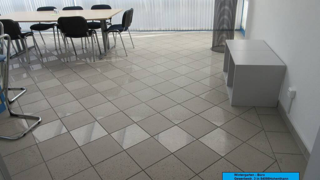 Zudem gehört zu der Gewerbeeinheit ein Wintergarten (ca. 43m²) mit angegliederter Einbauküche (ca. 9 m²). Der helle, attraktiv geflieste Raum eignet sich hervorragend für den repräsentativen Auftritt Ihres Unternehmens.