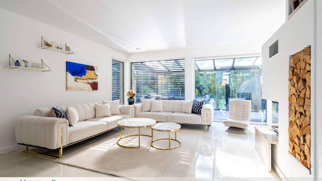 Das Erdgeschoss überzeugt mit einer offenen, lichtdurchfluteten Gestaltung. Der großzügige Wohn- und Essbereich mit offener Design-Küche, Kamin und großflächigen Fensterelementen bildet das Herzstück des Hauses. Vom Wohnbereich aus gelangen Sie direkt in den Wintergarten, der das ganze Jahr über zusätzlichen Wohnkomfort bietet.