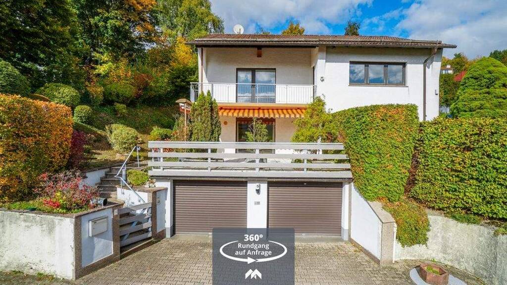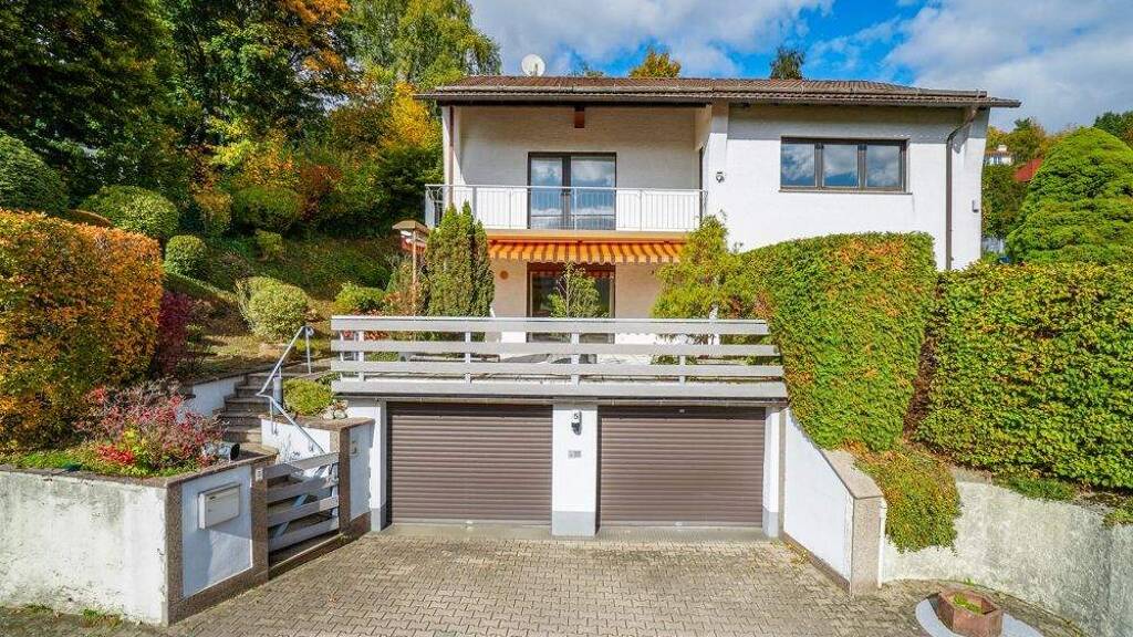 Die Hanglage des Grundstücks wurde durchdacht angelegt: Terrasse und Balkon befinden sich erhöht über dem Straßenniveau und bieten dadurch geschützte, ruhige Rückzugsorte mit schönen Ausblicken. Trotz der Nähe zum Ortskern genießt man hier ein hohes Maß an Privatsphäre und Wohnqualität.