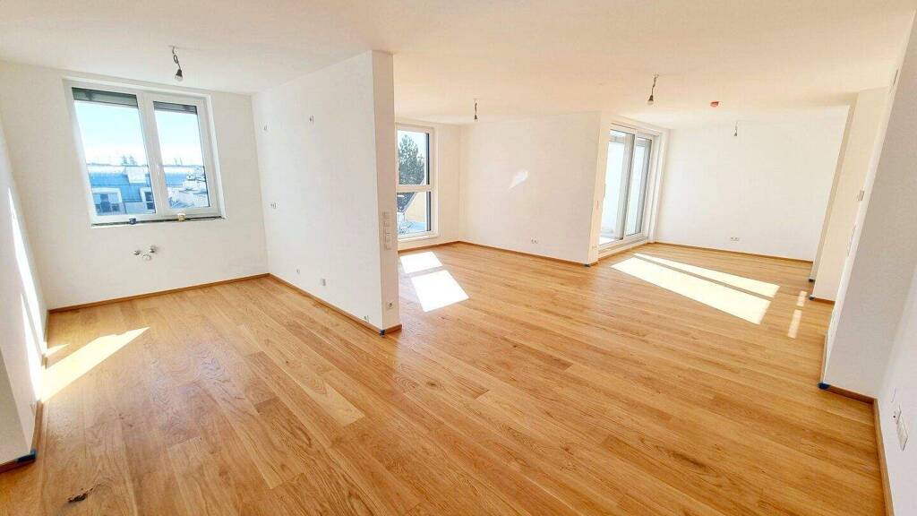 Ihre neue Traumwohnung wird Sie restlos begeistern und teilt sich einen geräumigen Vorraum mit Platz für eine Garderobe, einen riesigen und nahezu zur Gänze uneinsichtigen Wohn-Essbereich mit Zugang zu 2 Terrassen, 4 getrennt begehbare Schlafzimmer, wobei eines einen eigenen Schrankraum besitzt, 2 großzügige Bäder mit Fenster, Dusche, Badewanne und WC, ein separates WC, einen praktischen und super großen Abstellraum sowie das Highlight der Wohnung - eine riesige Dachterrasse mit einem 360Grad Rundumblick.