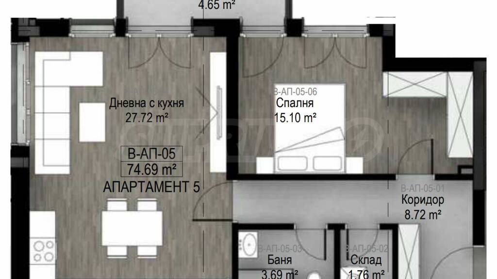 Es wird im fertiggestellten Zustand gemäß bulgarischen Baunormen (mit Kitt und Estrich) verkauft.