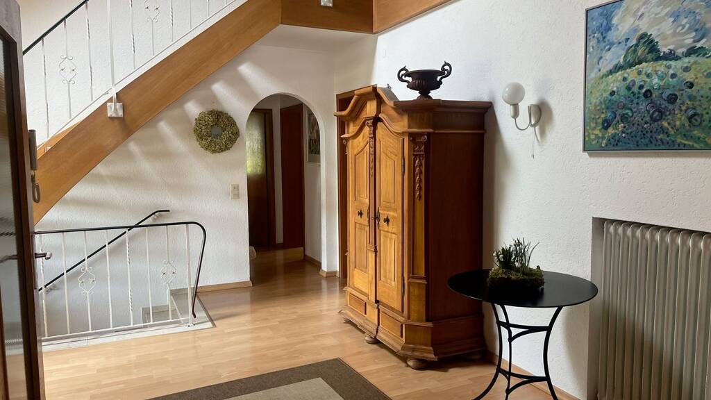 Besondere Merkmale wie die repräsentative Diele, ein Gästezimmer, Fitnessraum, ein Büro eine großzügige Terrasse von 40 Quadratmetern machen dieses Haus zu einem einzigartigen Rückzugsort. Der traumhaft schön angelegte Garten lädt zum Verweilen ein und bietet einer Familie mit Kindern viel Gestaltungsmöglichkeit. Hier wäre die Integration eines Pools problemlos möglich. Zwei Garagen bieten ausreichend Platz für Ihre Fahrzeuge, während der Balkon mit Südausrichtung sonnige Stunden verspricht.