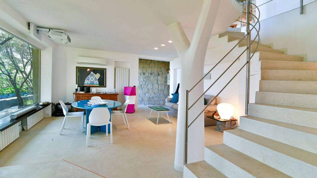 Die großen Fenster auf allen Ebenen ermöglichen es Ihnen, ständig das natürliche Licht und den spektakulären Blick auf das Meer, die Inseln und den Monte della Madonna zu genießen, wodurch jeder Moment des Tages zu einem einzigartigen und unvergesslichen Erlebnis wird.
