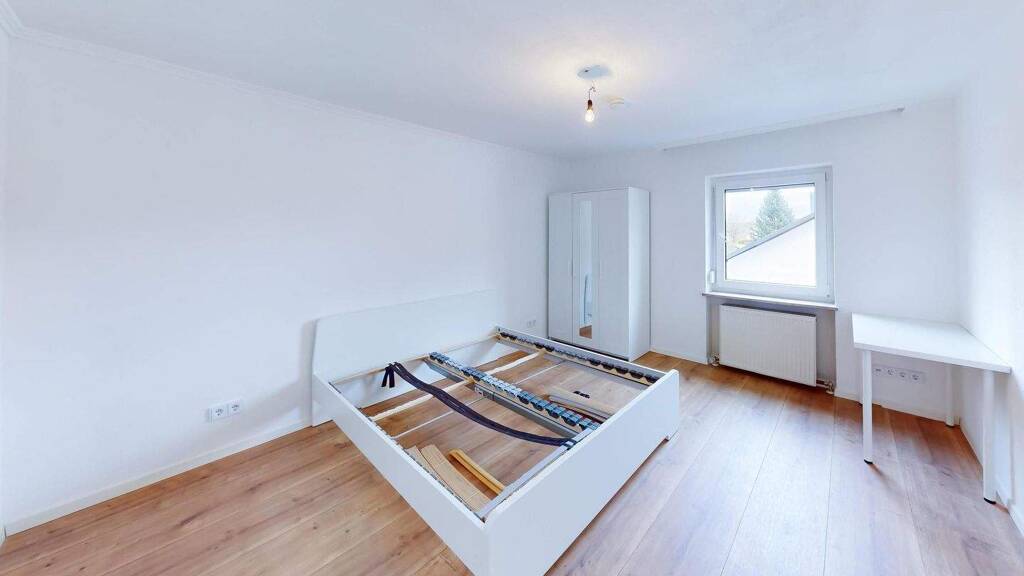 . Edles Laminat in Holzoptik für ein wohnliches Ambiente . Moderne weiße Sockelleisten . Wände und Decken frisch verputzt und gestrichen . Hochwertige, abschließbare Zimmertüren . Vollmöblierung mit Bett, Kleiderschrank und Schreibtisch . Rollläden für Verdunkelung und Privatsphäre . Moderne Einbauküche mit Backofen, Cerankochfeld, Kühlschrank, Spülmaschine und großzügiger Theke mit Barhockern . Ein Badezimmer mit Tageslicht, Badewanne, WC und Waschbecken . Ein zweites Badezimmer mit moderner Regendusche, WC und Waschbecken . Waschmaschine und Trockner zur gemeinsamen Nutzung . Carport-Stellplatz für 80 € monatlich (optional)