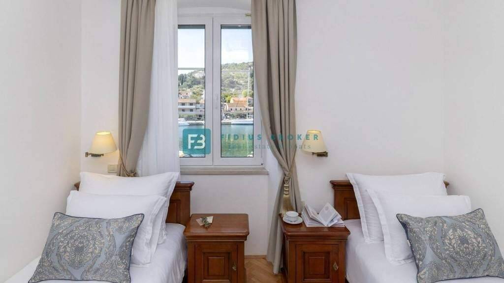 MURTER - Eine wunderschöne Villa zum Verkauf, direkt am Wasser gelegen, nahe am Meer, bietet erstklassigen Luxus und historischen Charme! Die Immobilie eignet sich für die private oder geschäftliche Nutzung und verfügt über eine besondere Atmosphäre und eine interessante Lage. Es wurde umgebaut und wird als Mini-Hotel der Kategorie Heritage-Hotel genutzt.