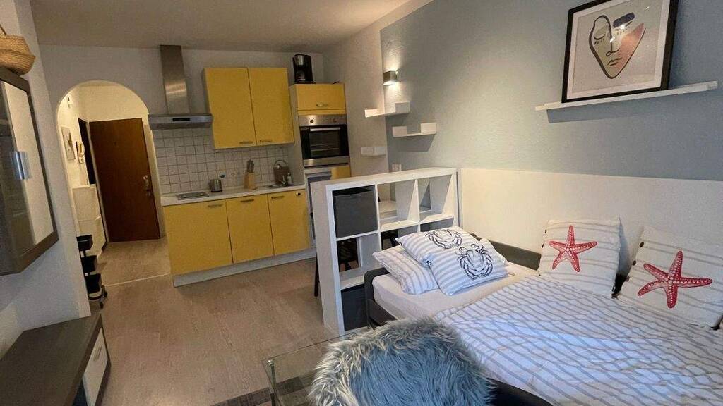Klein, fein und genau dein Ding: Dieses stylische, voll möblierte Studentenapartment bietet die alles, was du zum Wohlfühlen brauchst Der helle Wohnbereich ist smart geschnitten und durch eine offene Einbauküche ergänzt - perfekt für entspanntes Kochen und Wohnen. Die Einrichtung ist modern und geschmackvoll, so dass du direkt einziehen kannst ohne dir Gedanken um Möbel zu machen. Highlight ist der Balkon mit Blick auf den mit Bäumen bepflanzten Innenhof - ruhig entspannt und ideal zum Abschalten nach Uni oder Arbeit