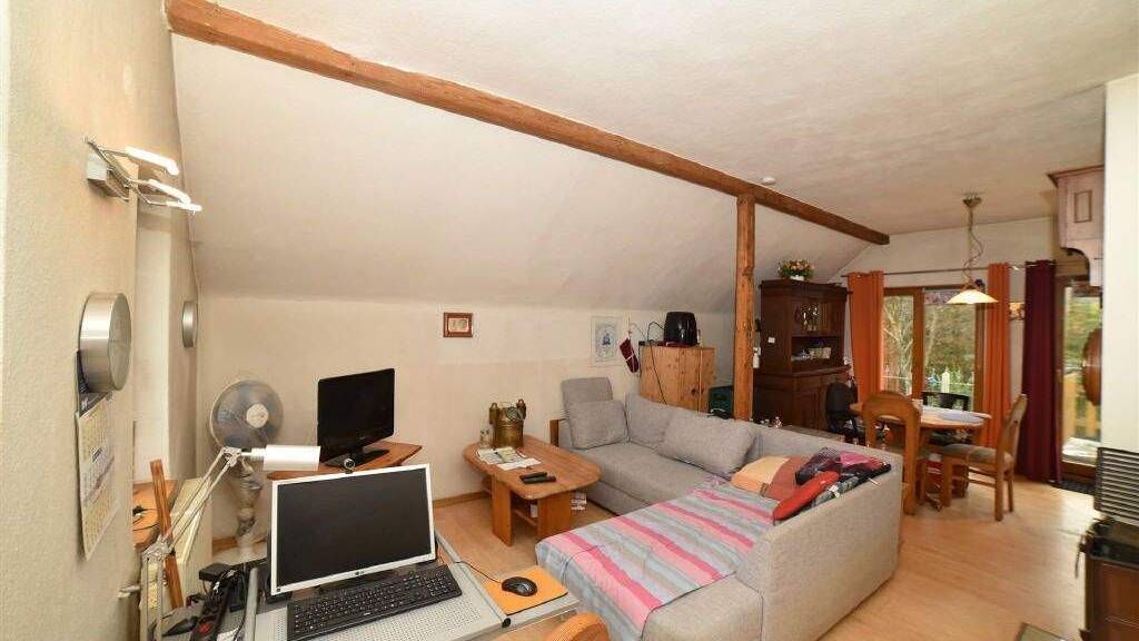 Im Erdgeschoss befindet sich der Flur/Eingangsbereich, 3 Zimmer und ein natürlich belichtetes Badezimmer mit Dusche und Badewanne. Das Obergeschoss verfügt über einen Flur, ein großes Wohn-/Esszimmer und eine perfekt nach Südwesten ausgerichtete Dachterrasse. Ein weiterer Pluspunkt ist der Vollkeller. Hier stehen Ihnen weitere Räume zur individuellen Nutzung frei zur Verfügung. Die Liegenschaft befindet sich in einem renovierungsbedürftigen Zustand, bietet jedoch genau dadurch eine hervorragende Grundlage für Käufer, ihre eigenen Wohnvorstellungen zu verwirklichen und somit den Charakter des Hauses neu hervorzuheben.