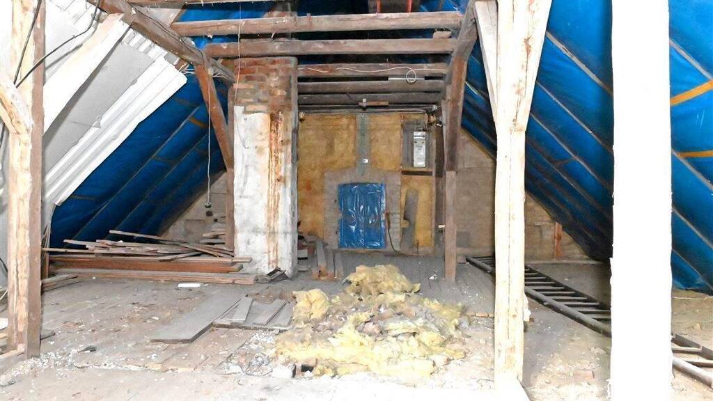 Das Haus verfügt derzeitig nur noch im Badezimmer, Hauswirtschaftsraum und in der Ausbaureserve des Dachbodens über Fußbodenbeläge. Die restlichen Beläge wurden im Zuge der Entkernung von den jetzigen Eigentümern entsorgt. In das Haus kommend gelangen Sie in den geräumigen Flur, von dem Sie jedes Zimmer separat begehen können. Sowohl das Wohnzimmer mit Glasfaseranschluss als auch das Schlafzimmer verfügen über eine sehr schöne Größe und sind durch einen Durchgang miteinander verbunden. Die Küche bietet Ihnen ausreichend Platz für eine Einbauküche und einen kleinen Esstisch. Des Weiteren gelangen Sie von hier aus in den Hauswirtschaftsraum, in dem der Waschmaschinenanschluss zu finden ist. Das Badezimmer ist eine Stufe höher gelegen als der Rest des Erdgeschosses. Dieses ist mit einer Badewanne und einem Fenster ausgestattet. Über die Hartholztreppe gelangen Sie in die Ausbaureserve des Dachgeschosses. Dank der Deckenhöhe wären ein oder zwei weitere Schlafzimmer und ein Badezimmer denkbar.