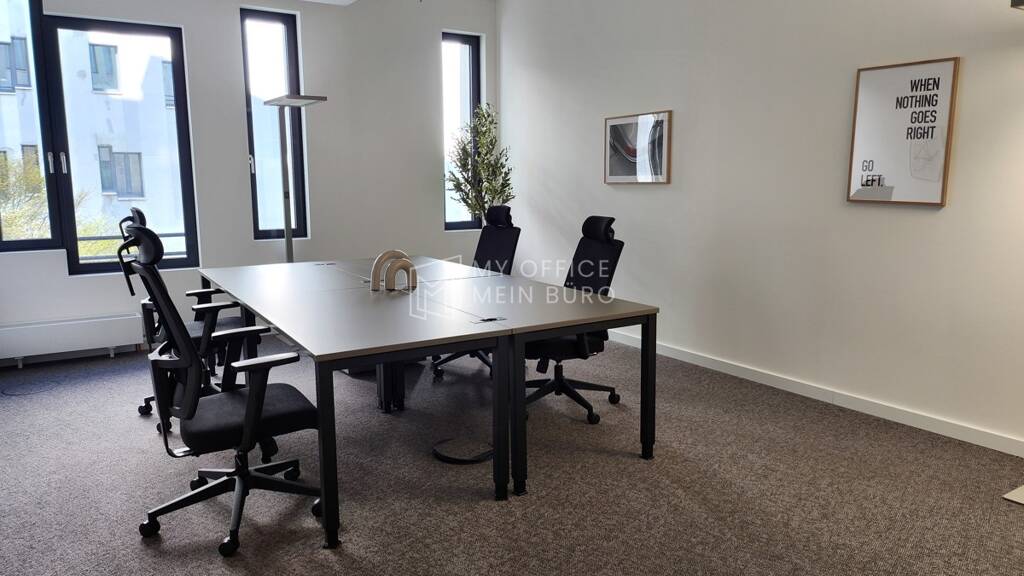 Dieser moderne Flexspace bietet eine ideale Arbeitsumgebung mit stilvollen Teambüros, einem einladenden Loungebereich und einem funktionalen Meetingraum. Die Ausstattung umfasst ergonomische Bürostühle, großzügige Schreibtische und moderne Beleuchtung, die für ein produktives Arbeitsklima sorgen. Große Fensterfronten lassen viel Tageslicht herein und schaffen eine angenehme Atmosphäre.