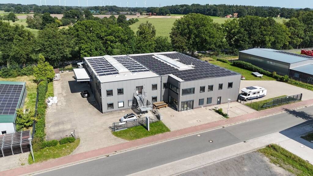 Produktions-/Lagerhalle mit Bürotrakt (Glasfaseranschluss vorhanden) und Möglichkeit einer Betriebsleiterwohnung im Obergeschoss auf einem 4.423 m² großen, eingefriedetem (Stabgitterzaun 1,8 m und elektrische Torelemente) Grundstück im Landkreis Oldenburg/Gemeinde Dötlingen/Ortschaft Neerstedt, im Gewerbegebiet aus dem Ursprungsbaujahr 2015, mit Erweiterung aus 2022 (mit Erhöhung des Gasanschlusses auf 250 KW.