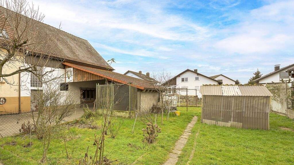 Auf dem Grundstück befinden sich ein Haus und eine Scheune, die 1948 errichtet wurden. Beide Gebäude sind in einem sanierungsbedürftigen Zustand, bieten jedoch enormes Potenzial zur individuellen Gestaltung.
