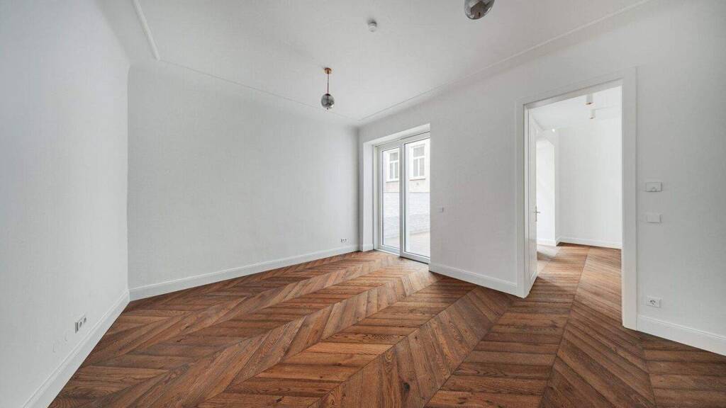 Der generalsanierte Zwei-Zimmer-Erstbezug mit ca. 45 qm Wohnfläche befindet sich im Parterre und ist in zwei Innenhöfe ausgerichtet.