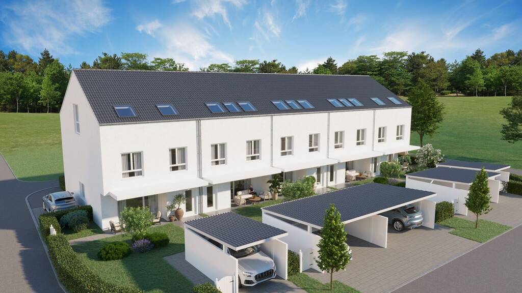 In der Drosselstraße in Großmehring entsteht ein exklusives Neubauensemble aus modernen Reihenhäusern. Hier trifft ländliche Wohnruhe auf die Nähe zur dynamischen Wirtschaftsregion Ingolstadt. Umgeben von gewachsener Nachbarschaft, grüner Natur und der idyllischen Nähe zur Donau bieten diese Häuser alles, was modernes Familienleben braucht. Das Reihenmittelhaus überzeugt mit einer durchdachten Raumaufteilung auf drei Etagen und einer Wohnfläche von ca. 174 m². Im Erdgeschoss empfängt Sie bereits ein großzügiger, offener Wohn-, Ess- und Küchenbereich von ca. 40 m² - der perfekte Mittelpunkt für gemeinsame Stunden mit der Familie oder gesellige Abende mit Freunden. Ein separates WC und eine praktische Speisekammer runden das Erdgeschoss funktional ab. Über die große Terrasse und den angrenzenden Garten verbindet sich das Innenleben nahtlos mit dem Außenbereich - ideal für Kinder, die Raum zum Spielen brauchen, oder für entspannte Sommerabende im Grünen. Im Obergeschoss befinden sich drei großzügige Zimmer, darunter ein geräumiges Schlafzimmer sowie zwei weitere Zimmer, die je nach Bedarf als Kinderzimmer, Arbeitszimmer oder Gästezimmer genutzt werden können. Ein hochwertiges Badezimmer mit vervollständigt diese Etage. Das Dachgeschoss begeistert mit einem lichtdurchfluteten Studio von ca. 35 m², das sich flexibel als Homeoffice, Hobbyraum, Jugendzimmer oder gemütlicher Rückzugsort nutzen lässt. Ein weiteres Duschbad und ein Abstellraum befinden sich ebenfalls auf dieser Ebene und machen das Dachgeschoss zu einem vollwertigen, vielseitig nutzbaren Teil des Hauses. Dieses Reihenmittelhaus der KfW-Effizienzhaus-Stufe 40 setzt moderne Maßstäbe in Sachen Energieeffizienz. Es sorgt für dauerhaft niedrige Nebenkosten und ein angenehmes Wohnklima das ganze Jahr über. Zwei Stellplätze, davon ein überdachter Carport, direkt am Haus sorgen für einen komfortablen Alltag.