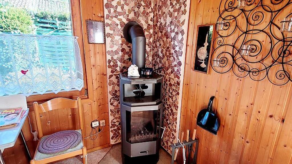 Das Haus wird mit einem Kaminofen beheizt, was fĂĽr ein behagliches Wohnklima sorgt.
