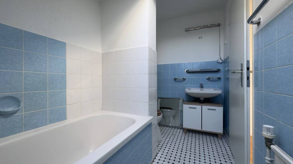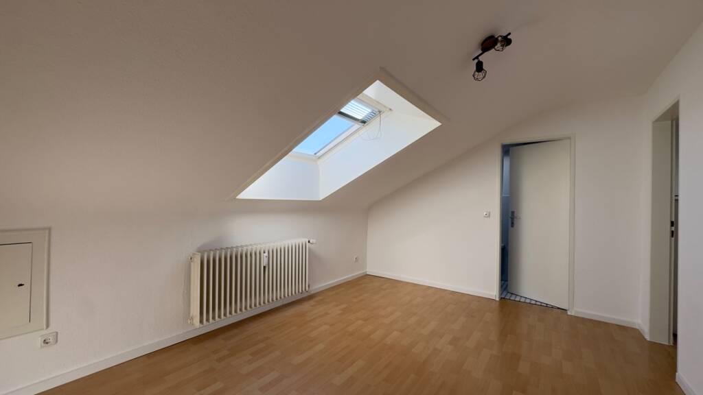 Diese gepflegte Dachgeschosswohnung befindet sich in einem ruhigen 10-Parteien-Mehrfamilienhaus in Weiterstadt. Die Wohneinheit zeichnet sich durch eine funktionale Raumaufteilung mit gemütlichen Dachschrägen und modernen Laminatböden in Holzoptik aus. Die Liegenschaft verfügt über ein Wohnzimmer sowie ein separates Schlafzimmer und eine voll ausgestattete Küche inklusive Spülmaschine, Kühlschrank und Backofen/Herd-Kombination. Durch die großen Dachflächenfenster ist die Wohnung hell und wirkt großzügig. Das Badezimmer ist gefliest und mit einer Badewanne ausgestattet. Zusätzlicher Stauraum findet sich unter den Dachschrägen. Die Beheizung erfolgt über eine Gas-Zentralheizung.