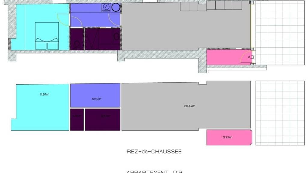 Cocheren .Erdgeschoss Wohnung - 2 ZKB - Terrasse von 18 qm - Lieferung 1er trimester 2025. Entrée - grosse Wohnraum mit Offene Kueche und Austritt auf der Terrasse - 1 Schlafzimmer - Badezimmer - Waschkueche- G-WC. (Heizung mit einer Luft/Luft Waermepumpe) -