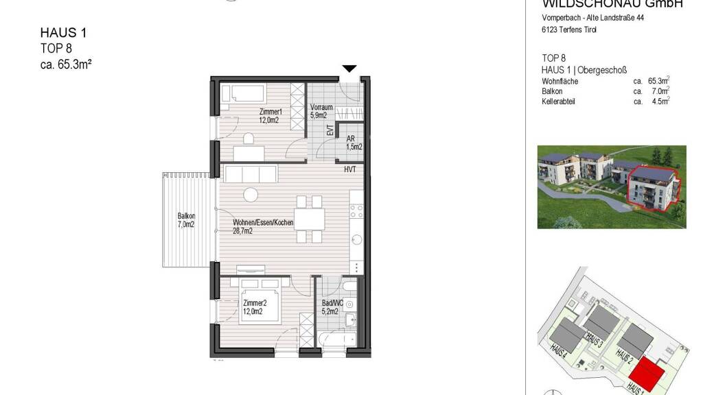 Wir errichten in leichter Hanglage in Oberau eine Wohnanlage mit voraussichtlich 31 Eigentumswohnungen in 4 Gebäuden. Die Objektadresse lautet: Lenzen 239, 6311 Oberau (Grundstück Nr. 307/3). Die Wohnanlage besteht aus einem Tiefgaragengeschoß / Eingangsebene, einem Gartengeschoß, einem Obergeschoß sowie einem Dachgeschoß. Es entstehen 2-, 3-, 4- und 5-Zimmer-Wohnungen immer mit Balkon oder Terrasse. Haus 1 + Haus 2 sowie Haus 3 + Haus 4 verfügen jeweils über ein gemeinsames Stiegenhaus sowie einen gemeinsamen Personenaufzug, die alle Geschoßebenen miteinander verbinden.