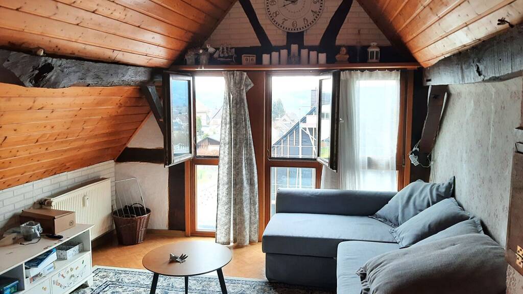 - Schlafzimmer - Kinderzimmer - Großzügige offene Wohnküche im Dachgeschoss mit herrlichem Blick auf die historische Freusburg - Zwei weitere Zimmer - Badezimmer - Stilvoll integrierte Fachwerkelemente
