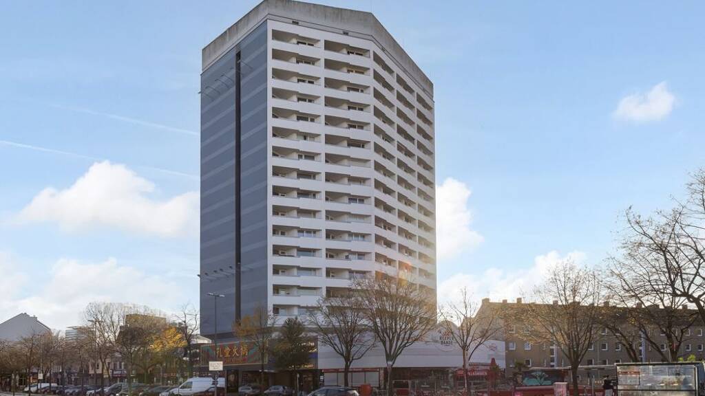 Diese modern sanierte Eigentumswohnung befindet sich im 6. Obergeschoss eines gepflegten Wohn- und Geschäftshauses aus dem Baujahr 1970. Das Gebäude umfasst 17 Etagen und 150 Wohneinheiten sowie vier Gewerbeeinheiten. Über zwei moderne Fahrstühle ist ein Zugang zu den Stockwerken gewährleistet.
