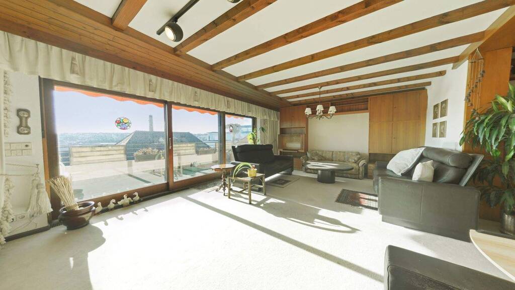 Diese großzügige 128 m2 große 3-Zimmer-Dachgeschosswohnung mit Aufzug und Balkon vereint urbanes Wohnen mit hohem Wohnkomfort und einer durchdachten Raumaufteilung. Sie richtet sich an anspruchsvolle Käufer, die Wert auf Lage, Großzügigkeit und Alltagstauglichkeit legen. Bereits beim Betreten der Wohnung empfängt Sie eine geräumige Garderobe mit ausreichend Platz für Jacken, Schuhe und Stauraum. Das Herzstück der Wohnung bildet der helle, weitläufige Wohnbereich mit direktem Zugang zum großzügigen Balkon. Große Fensterflächen sorgen für viel Tageslicht und ein angenehmes Wohngefühl - ideal für entspannte Stunden mit Blick über die Stadt. Über eine offen gestaltete Diele gelangen Sie in den Essbereich, der harmonisch in den Wohnraum integriert ist und dennoch eine angenehme räumliche Trennung bietet. Dieser Bereich eignet sich hervorragend für gesellige Abende oder gemeinsame Mahlzeiten. Die Küche ist separat angeordnet und funktional gestaltet. Ein angrenzender kleiner Vorraum zur Küche und ein Hauswirtschaftsraum bieten zusätzlichen Stauraum für Vorräte sowie Platz für Waschmaschine und Haushaltsgeräte. Das großzügige Schlafzimmer verfügt ebenfalls über einen direkten Zugang zum Balkon - ein besonderer Pluspunkt für ruhige Morgenstunden oder entspannte Abende. Zwischen Schlaf- und Arbeitszimmer befindet sich das innenliegende Badezimmer, ausgestattet mit Badewanne, Dusche, WC und zwei Waschbecken. Die Wohnung liegt im Dachgeschoss eines gepflegten Mehrfamilienhauses und überzeugt durch ihre Alleinlage auf dieser Etage, ihre Großzügigkeit und die zentrale Innenstadtlage. Hier wohnen Sie urban, komfortabel und dennoch ruhig - ideal für Menschen, die das Besondere suchen und Wert auf Individualität legen.