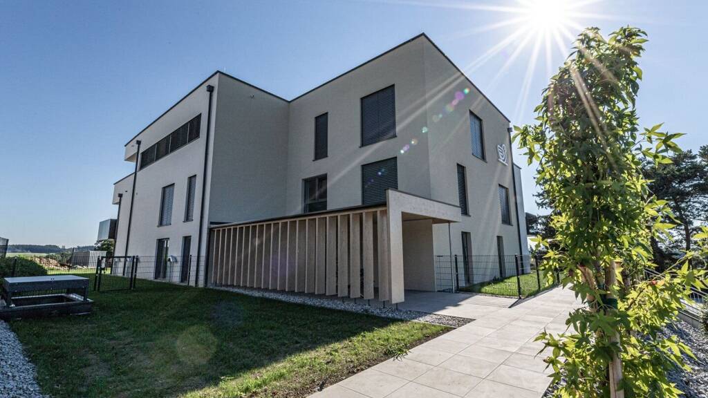 In Neumarkt am Hausruck am wunderschönen Pogberg gelegen, befinden sich die modernen Panoramavillen, welche 2021/22 errichtet wurden. In der exklusiven Wohnanlage, die aus 3 Hauptgebäuden besteht, entstanden 24 neue und moderne Wohneinheiten samt hochwertiger Ausstattung. Ab sofort, ist eine hochwertige Wohnung mit besonderen Extras zum Kauf verfügbar. Die 49,09m2 große 2-Zimmerwohnung gilt als Top-Objekt, da diese Wohneinheit viele hochwertige Besonderheiten aufweist. Ein besonderes Highlight ist der Balkon mit etwa 13,82m2. Große Fensterfronten machen die gesamte 2-Zimmerwohnung sehr hell und freundlich. Auf Besonderheiten wurde beim Bau großen Wert gelegt. Es sind eine Fußbodenheizung, hochwertige Parkett und Fliesenböden und überall Raffstores in der Wohnung integriert. Bad und WC wurden hochwertig und modern ausgestattet. Zur Wohnung zählen ein Kellerabteil und 1 Carportplatz Nr. 29. Eine allgemeine Fahrradabstellfläche, ein Trockenraum sowie eine allgemeine Gartenfläche stehen in den Panoramavillen ebenso zur gemeinschaftlichen Nutzung zur Verfügung.
