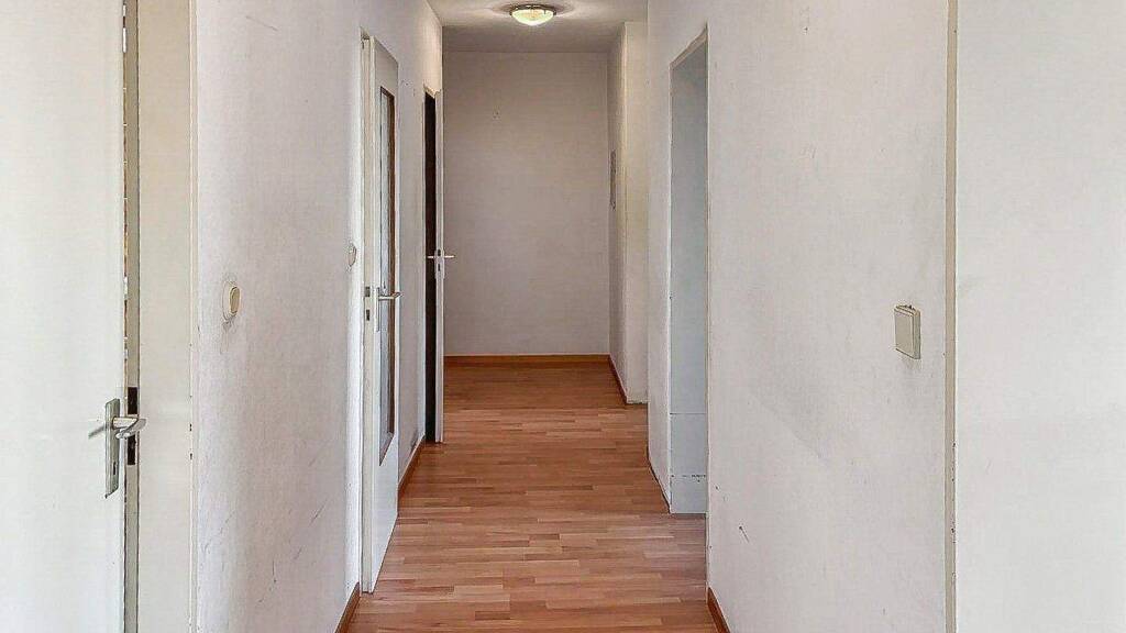 Sie gelangen in das Haus entweder über die Eingangsstufen oder barrierefrei über die Rampe. Die in der 6. Etage gelegene Wohnung umfasst vier Zimmer, eine Küche, zwei Abstellräume, ein Wannenbad und ein Gäste-WC. Ein nummerierter PKW-Stellplatz direkt vor dem Haus und ein eigener Kellerraum gehören ebenfalls zur Wohnung. Den Bewohnern stehen zudem Gemeinschaftsflächen wie ein Fahrradkeller, eine Waschküche mit Waschmaschinen und Trockner, ein Trockenkeller sowie der schöne Garten mit Spielplatz zur Verfügung. Das Hausgeld beträgt derzeit ca. 527 EUR pro Monat.