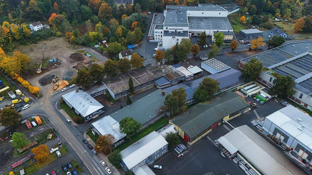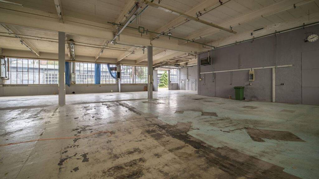 Diese großzügige, lichtdurchflutete Halle befindet auf einem Gewerbeareal unweit des Saaleufers. In dieser Gegend ist eine Vielzahl von größeren und mittleren Betrieben angesiedelt.
